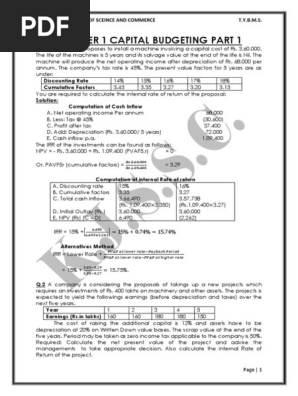 Capital Budgeting Tybms Pdf Net Present Value Internal Rate Of Return