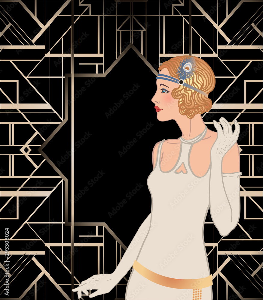 Art Deco Vintage Invitation Template Design With Illustration Of Flapper Girl Patterns And Frames Retro Party Background Set 1920 S Style Vector For Glamour Event R Jazz Party Stock Vector Adobe Stock